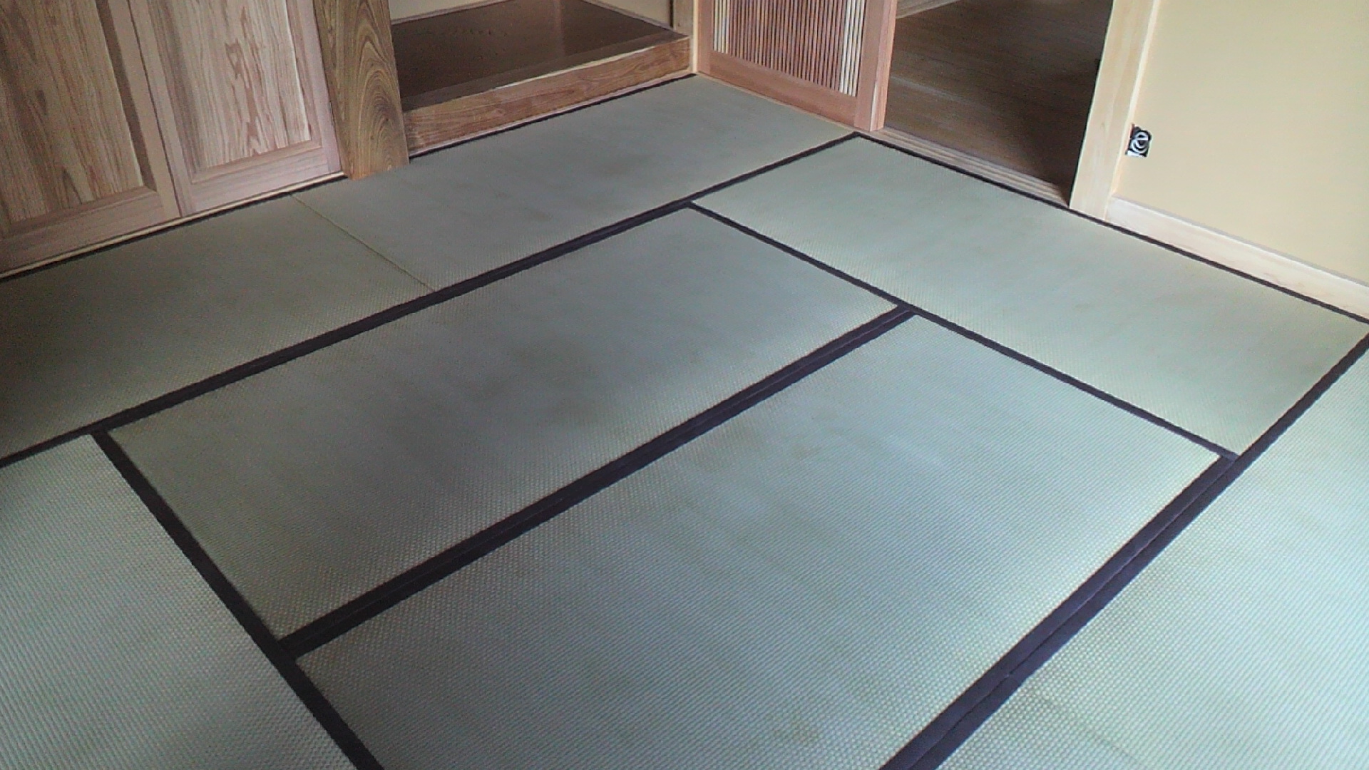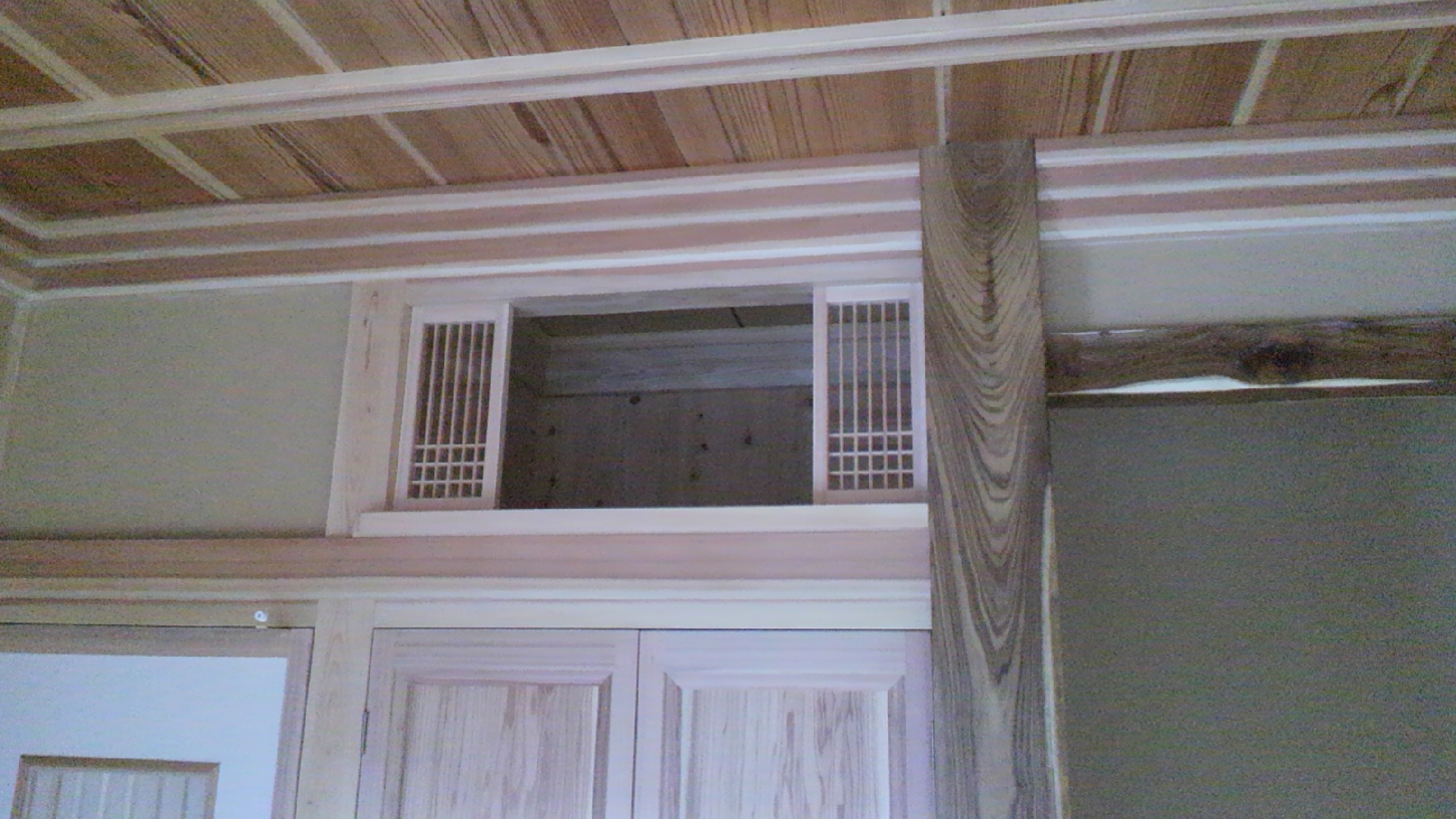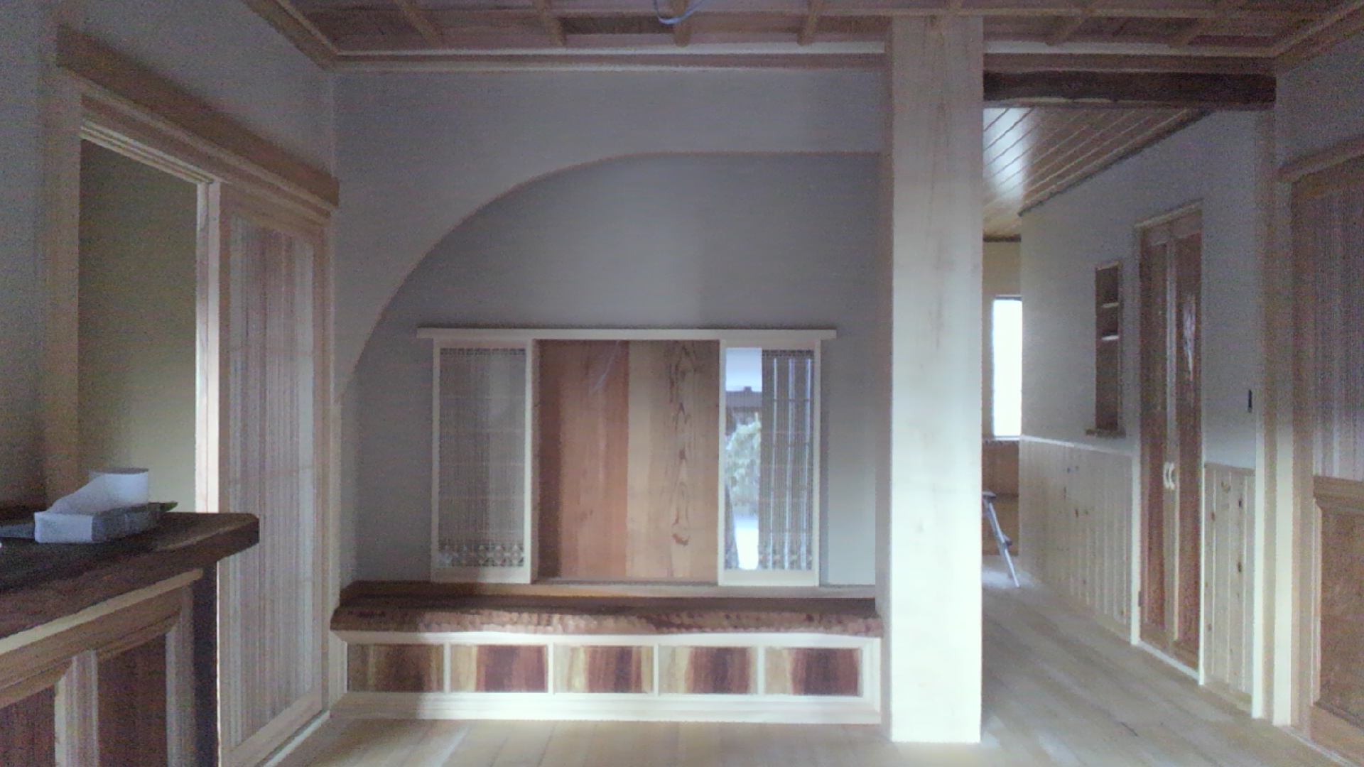 建物の掃除もすみ、和室に畳が入りました。 神棚は埋め込み式にしました。