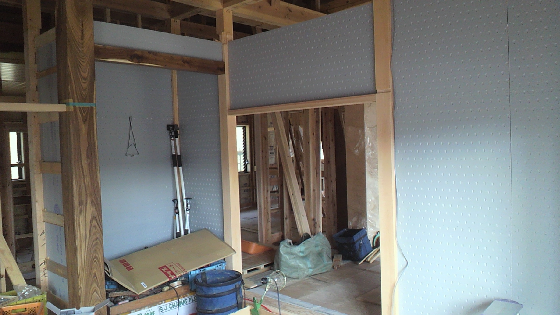 和室の壁のボードが貼りあがり部屋らしくなってきました。
