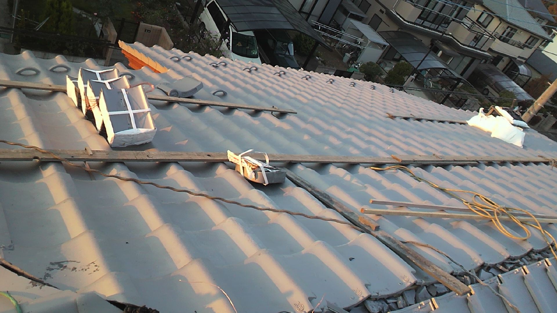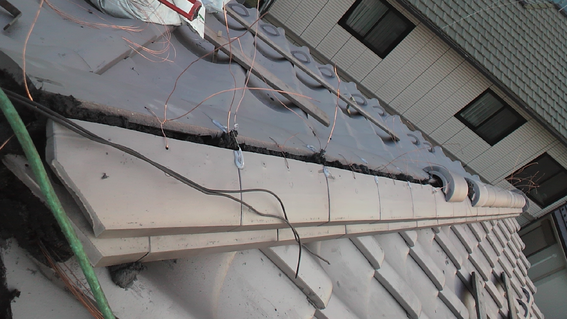 2階屋根の平瓦がふき終わりました。只今、棟瓦の施工中です。