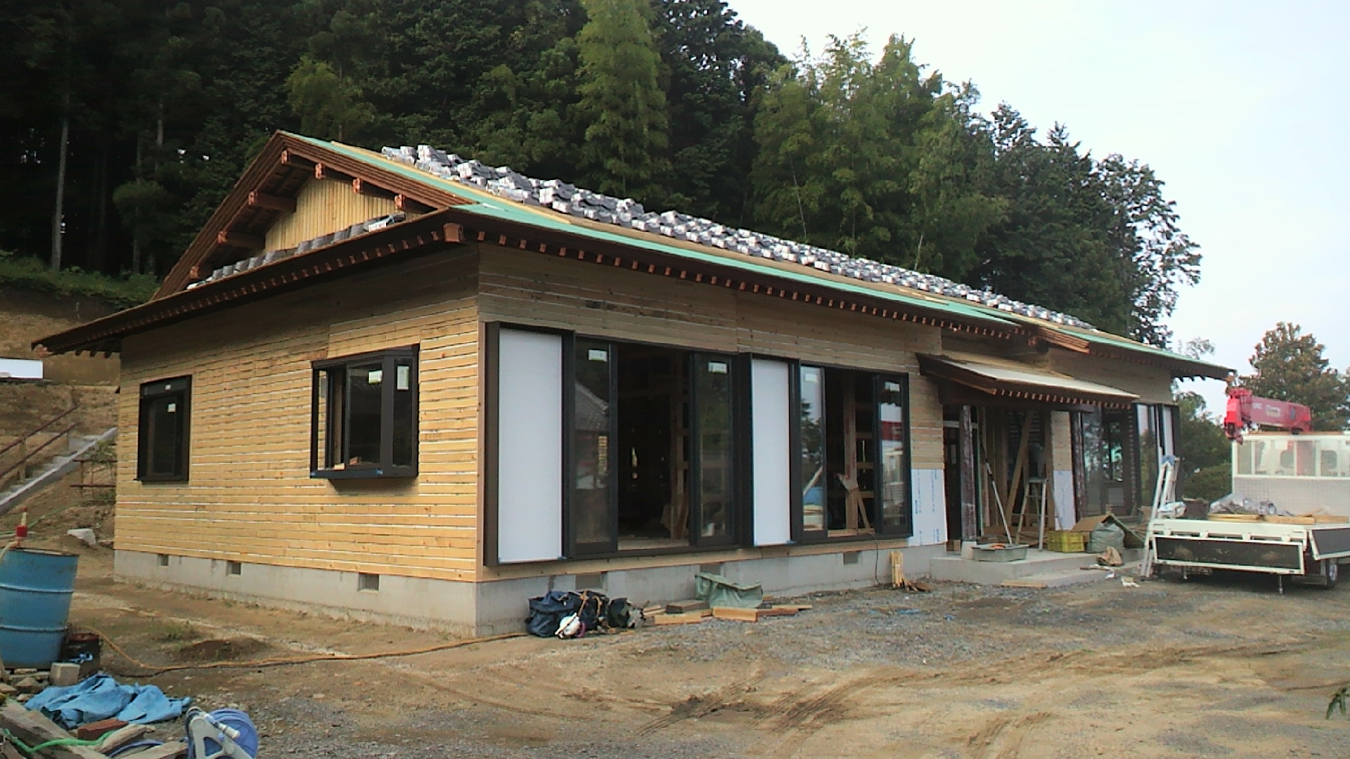 只今、外部の板張りと、窓サッシの取り付け中です。