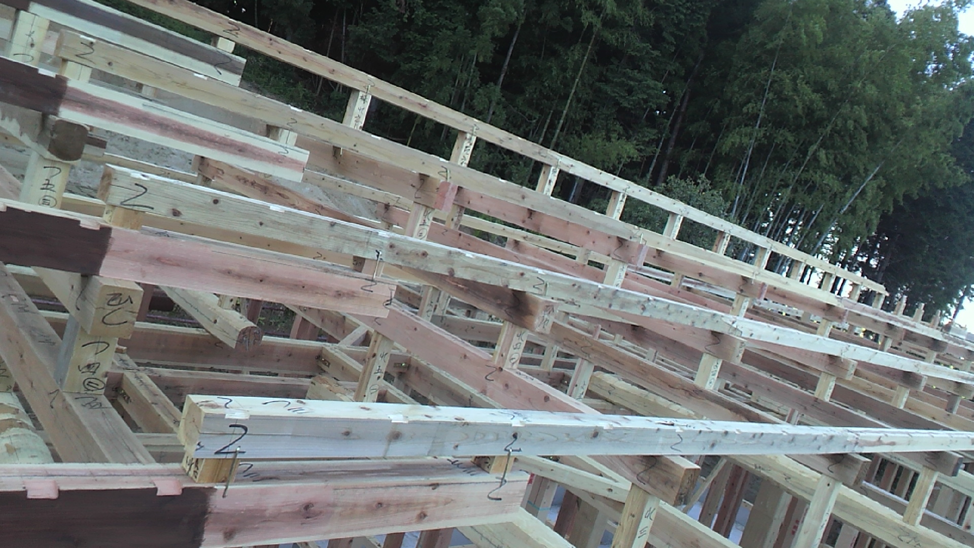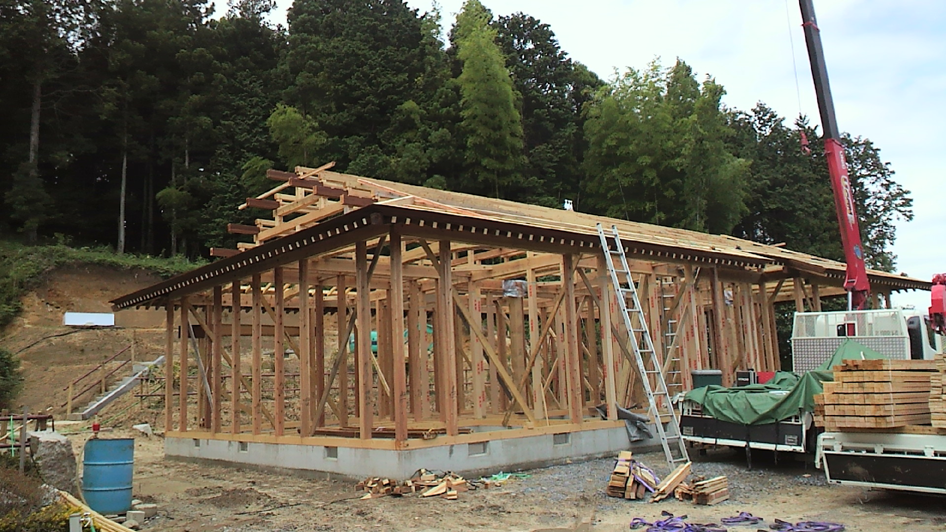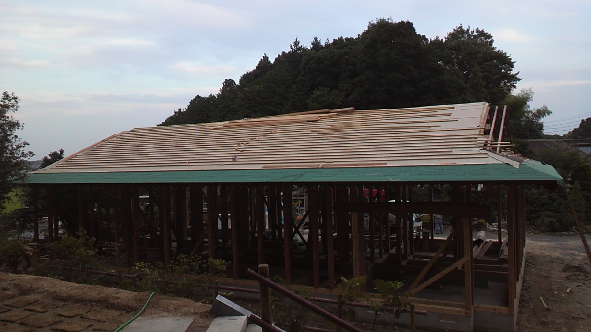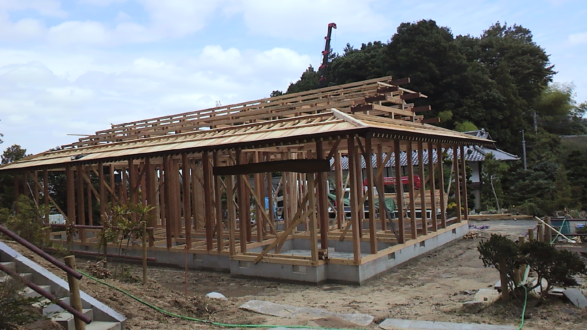 屋根が出来てきました。只今、瓦段と入母屋の施工中です。