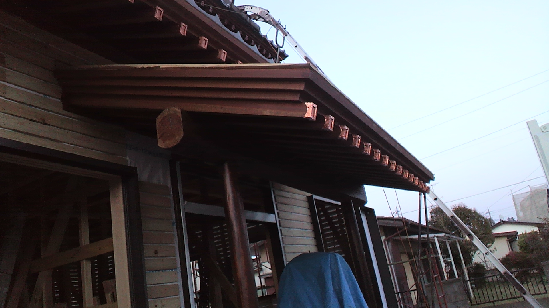 玄関の下屋が出来上がりました。