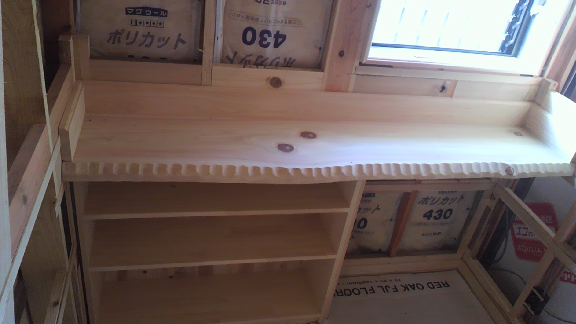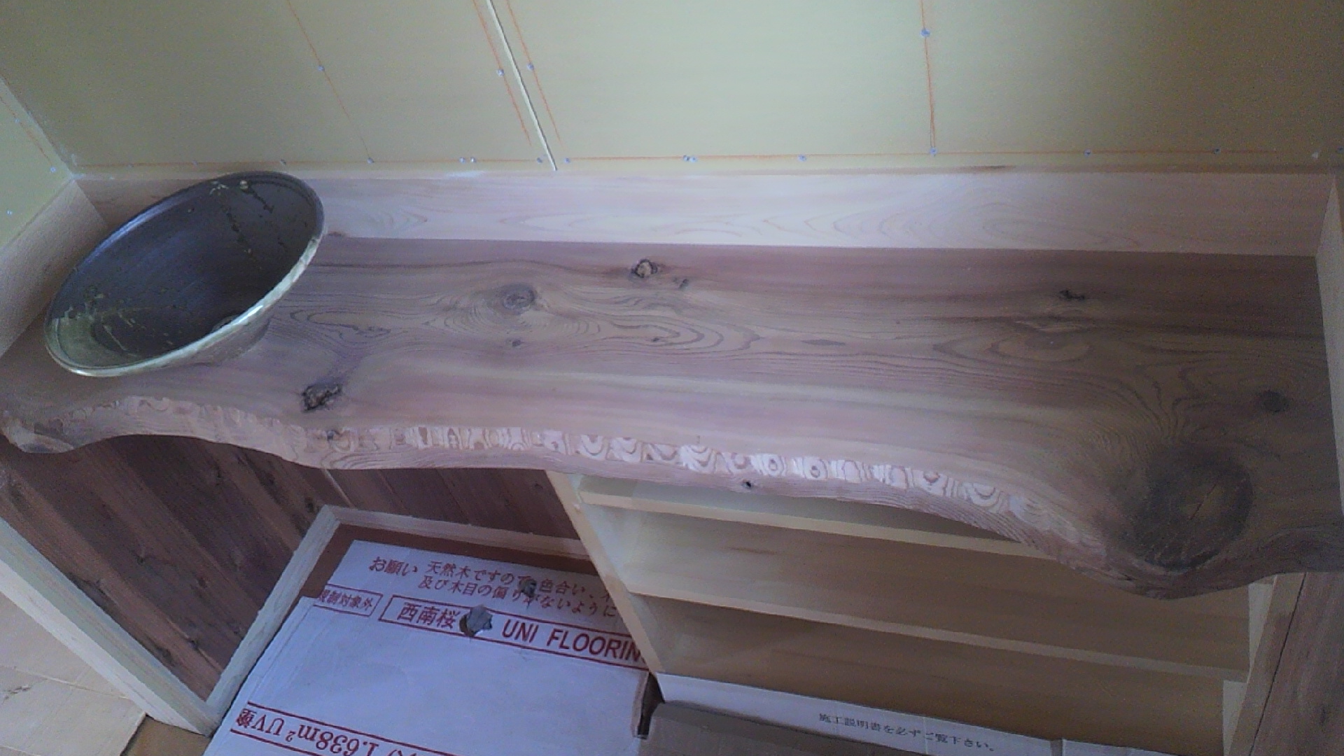 トイルのカウンターが完成しました。檜の無垢材を使用しました。