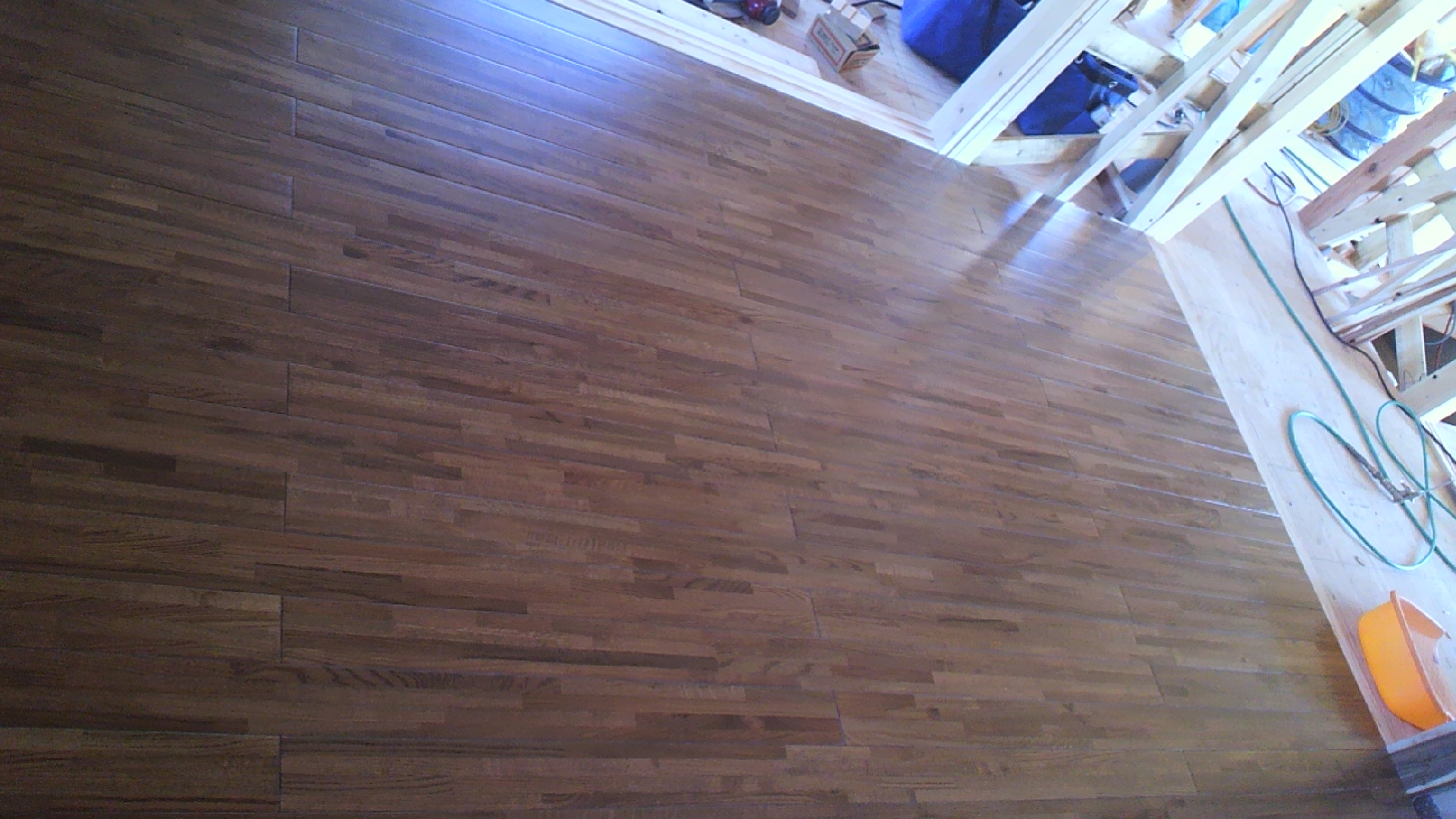 床板が貼り上がりました。ナラの無垢材を使用しました。
