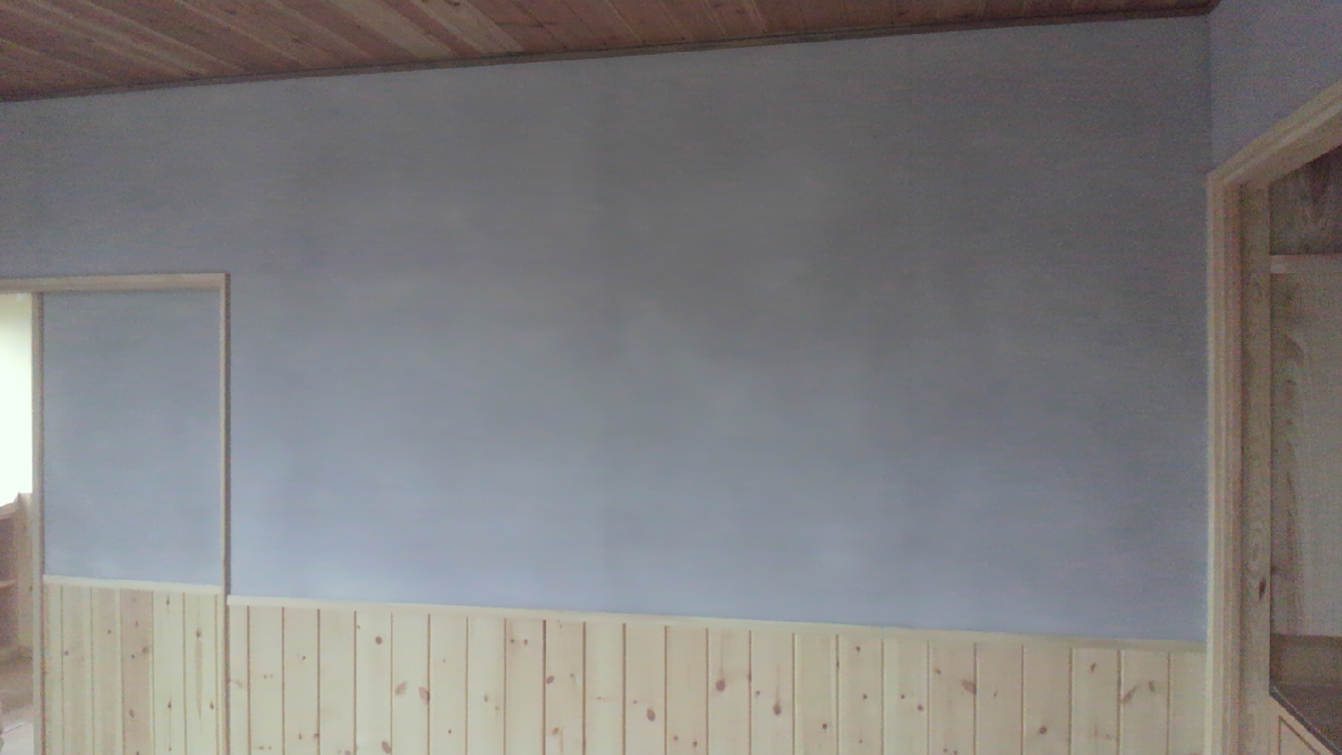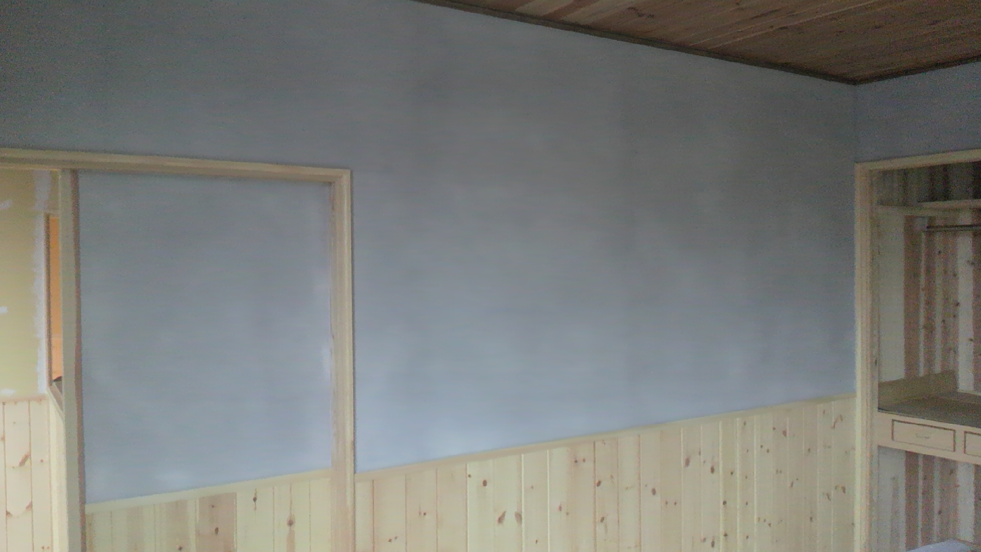 外部壁の下塗りが終わりました。 乾燥のためしばらくおいてから仕上げになります。