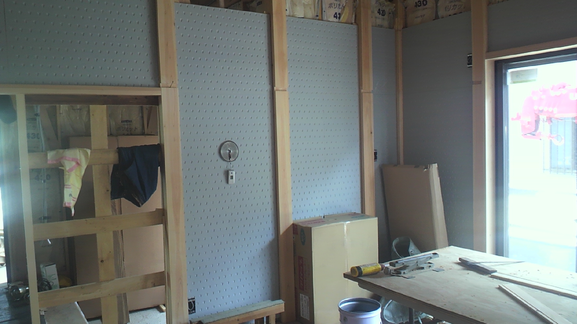 和室壁のボードがはりあがり、部屋の形ができてきました。