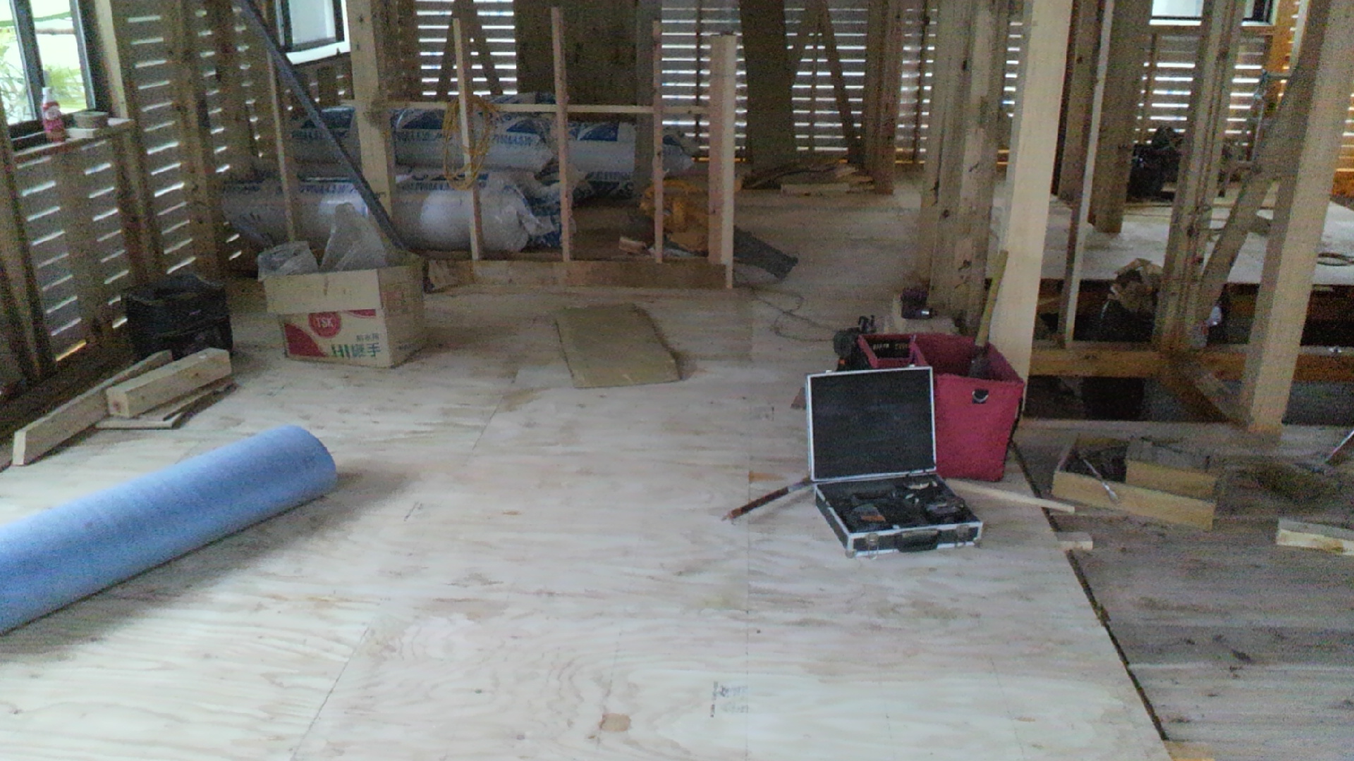 只今、1階の床あげ中です。