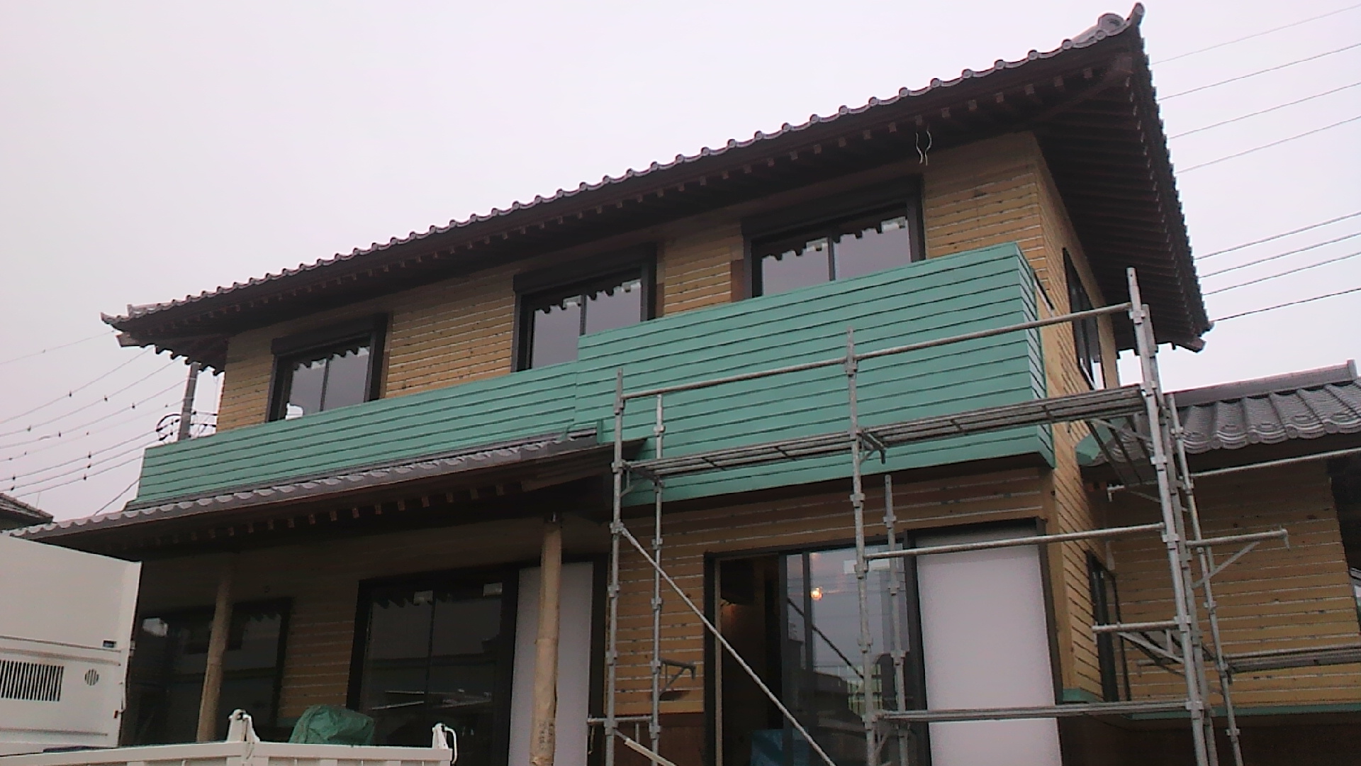 ベランダ及び外回りの板金工事が終わりました。これで左官屋さんの工事ができるようになりました。