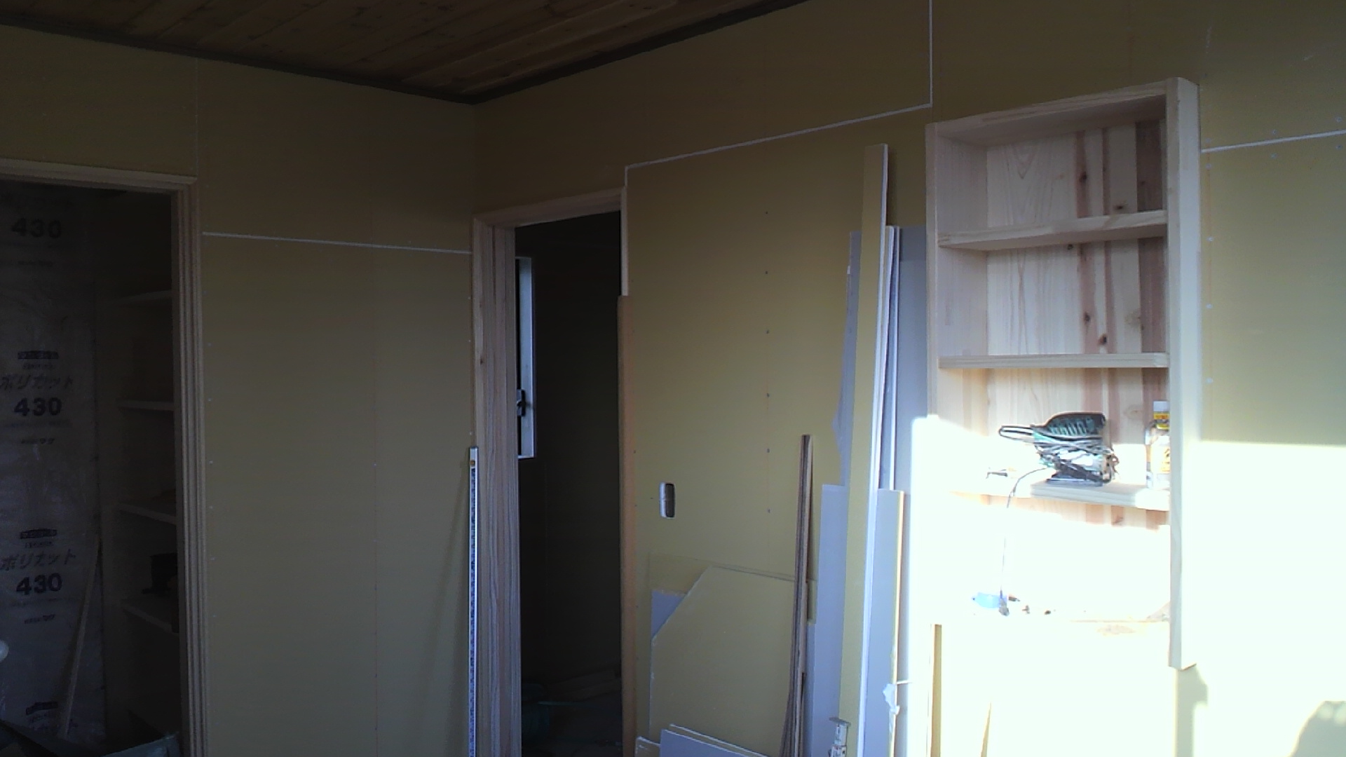 2階、壁のボードが貼りあがりました。