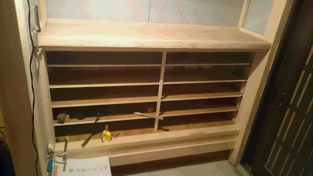 玄関下駄箱の施工を行いました。天板には杉材を使用しました。