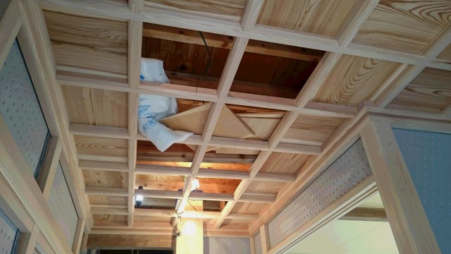 只今、玄関天井の施工中です。