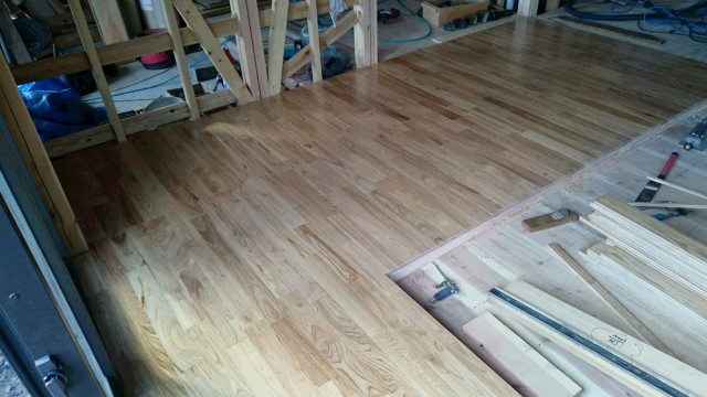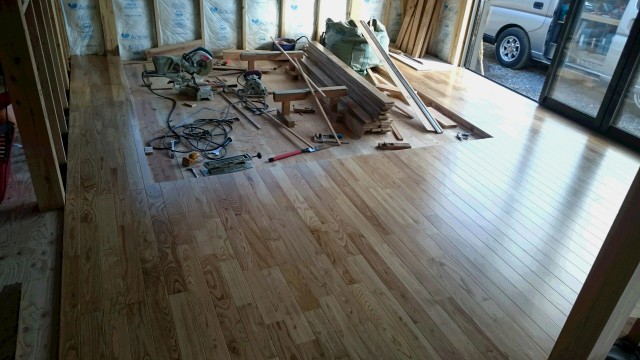 床板には栗材を使用しました。リビングの床には真ん中が畳になります。