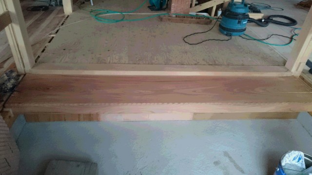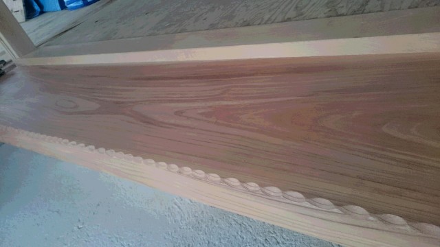 玄関の故縁板の施工を行いました。ケヤキ材を使用しました。