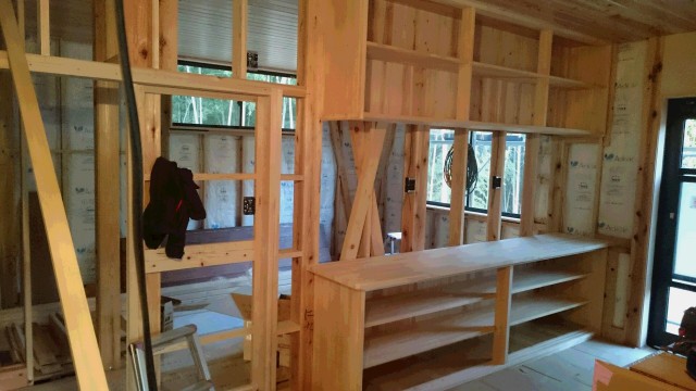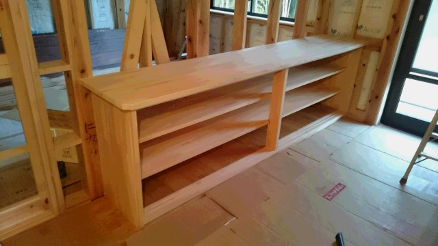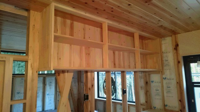 キッチンの食器棚が完成しました。棚には後で扉が付きます。