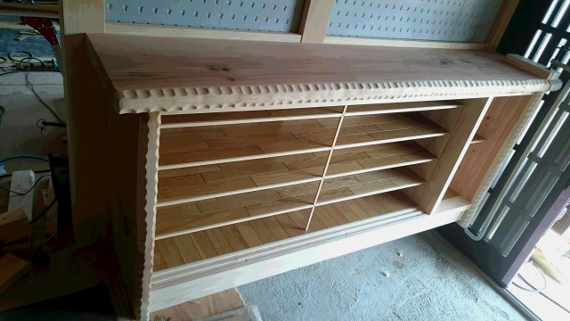 下駄箱が完成しました。これから和室の天井の施工にかかります。
