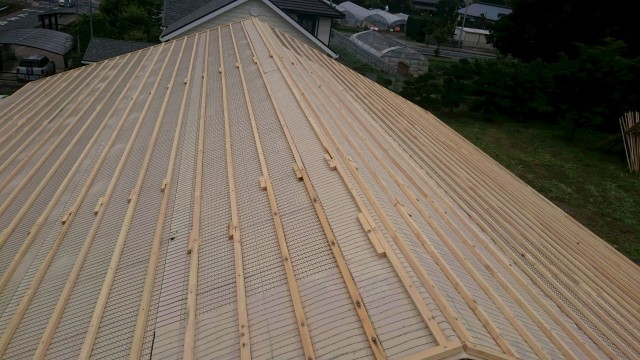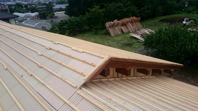 2階の屋根が完成しました。これから1階の屋根の施行を行います。