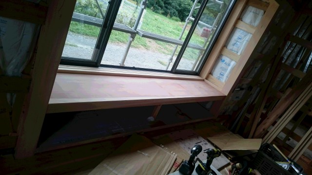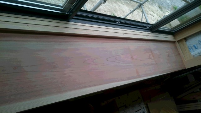 和室出窓の板を取り付けました。材料には杉材を使用しました。