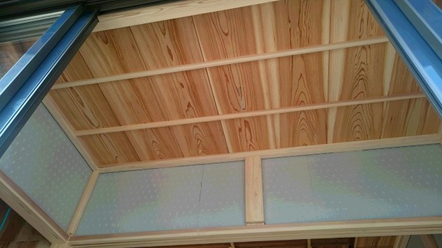 和室前廊下の天井が完成しました。これから和室天井の施工を行います。