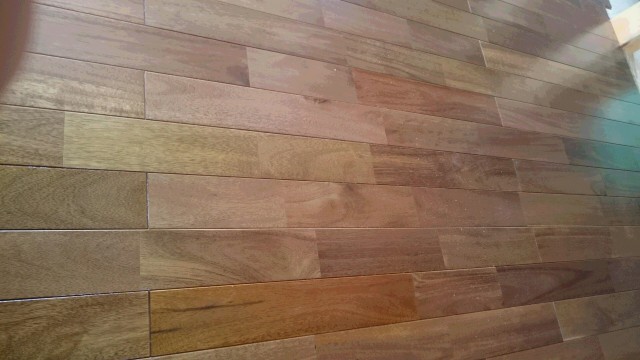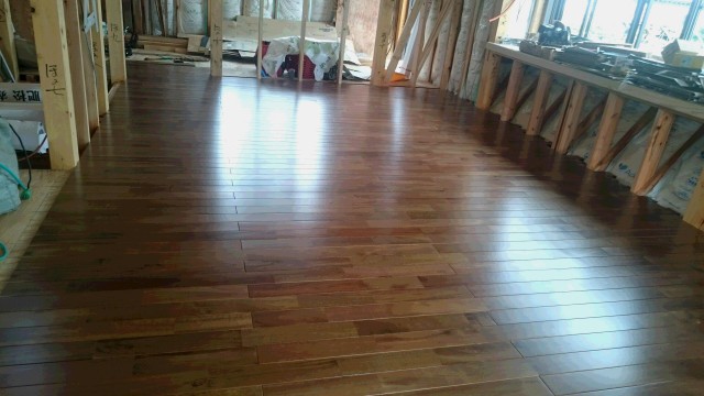 リビングの床が張上がりました。床材にはウォールナット材を使用しました。