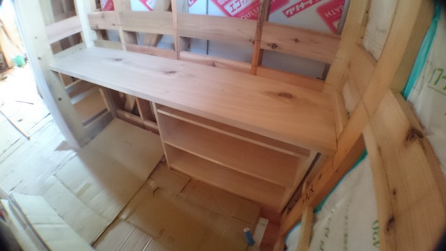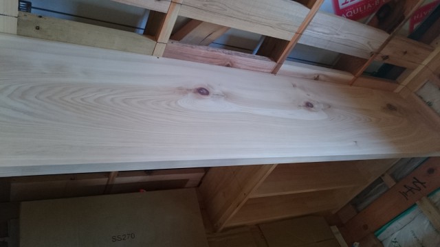 天板には檜板を使用しました。後ほど手洗いボールがつきます。