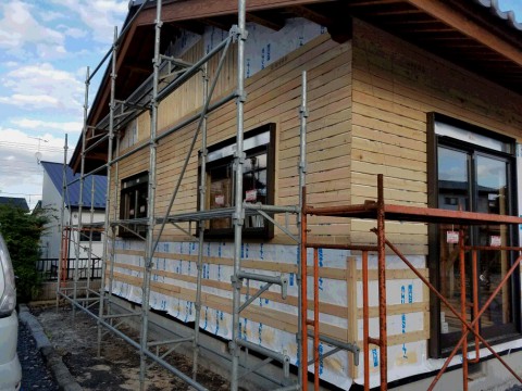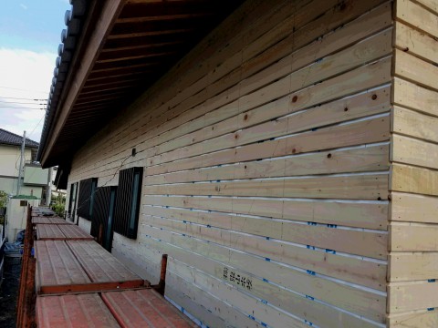外部の板張りが終わりました。壁の下は板張りになります。
