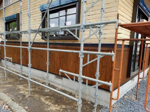 外部壁の腰板の施工が終わりました。これで左官工事ができるようになりました。