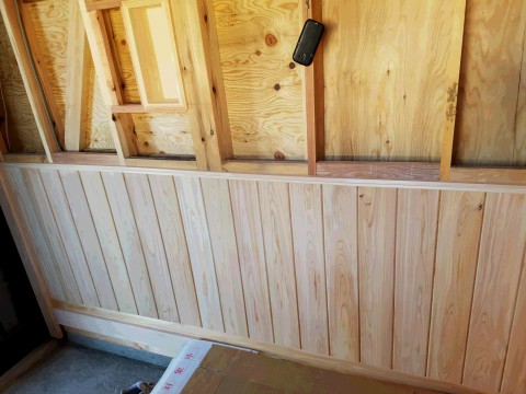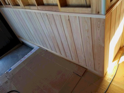 腰板が張りあがりました。サワラ材の板を使用しました。