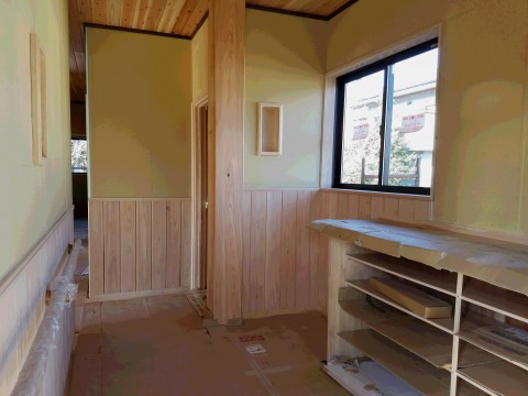 壁のボード張りが終わり、大工工事が終わり掃除をおこないました。