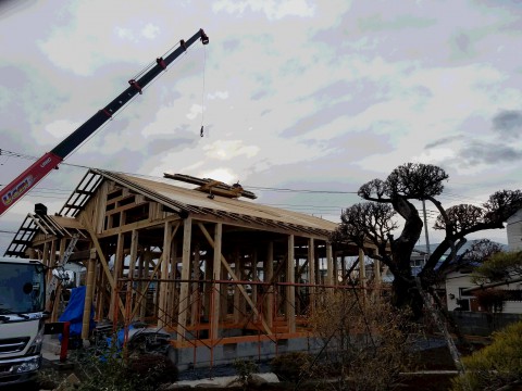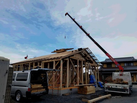 只今屋根の施工中です。
