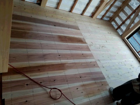 あら床の施工が終わり、天井の施工にかかりました。