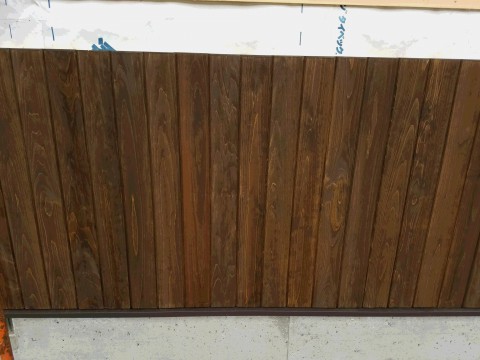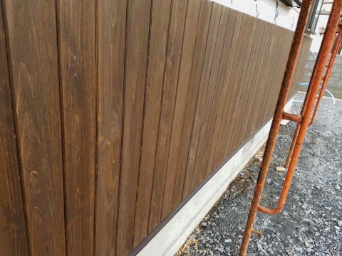 外部の腰板が張りあがってきました。桧材を羽目板加工してもらい使用しました
